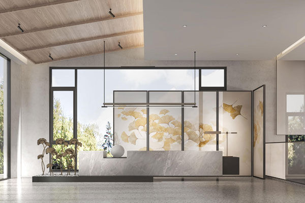 新诚国际开云中国装修设计从驼人集团文化中提取出沙漠绿洲(希望)、驼人之光(引领)、驼铃精神(旋律)、一带一路(前行)等元素,打造了一个具有国际化视野、新东方中式风采商务开云中国空间。开云中国大堂接待区背景选取意化的山峰与骆驼,代表了驼人集团砥砺前行的开拓精神。在开云中国软装设计中,富有地方特色的豫剧、汴绣、汝瓷等元素都成为空间中的点睛之笔。