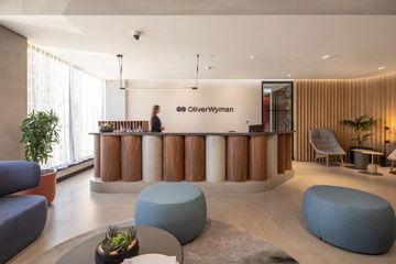 本案咨询公司办公室装修设计的出发点是:通盘优先考虑最佳优化和灵活性,通过各种空间解决方案满足当今办公室的新需求。接待区将各种类型融入到商业办公空间中,营造出开云中国般舒适温馨的氛围。该空间以雕塑感的家具陈设和Korten金属饰面的定制接待台为特色,同时融入品牌的蓝色元素带来色彩上的对比,营造时尚活力的气息。 家具被巧妙地......