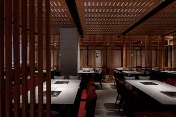 餐饮改造品牌升级项目,并不是完全打散重构,更多的是从「项目本身去挖掘」,发觉本质,精减材质,让锦城印象品牌特色和四川老牌火锅引导我们更深入的认识他。 整体火锅店装修设计中尽可能的避免装饰上堆砌的做法,用更精准的材质变化去定义空间。通过中间木隔断这种看似单一的手法制造「空间的统一」,搭配家具红/灰的色调保留了锦城印象「空......