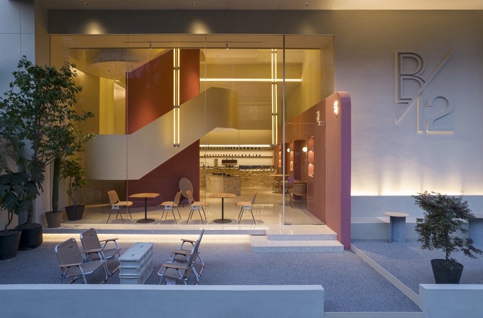 B/12代表最佳甜度。因此,弧形成了新店的主旋律。从入口处的隔墙,楼梯的平台,到餐桌和椅子,以及领先角落的天花板,它们都像太空商店里的奶酪一样游荡。...