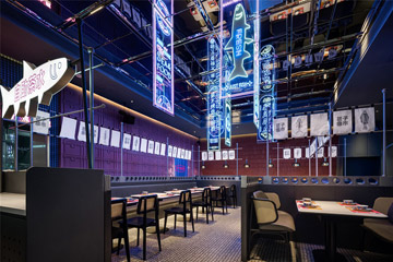 • 酷酷的霓虹灯复古港风烤鱼店装修设计