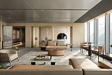 在平面上划分了接待、洽谈、茶室、水吧、会议室、休息室等功能。进入接待空间,室内消除了复杂的装饰,回归简约,以自然质感为主色调,点缀藤编艺术品,营造出稳定轻松的氛围。...