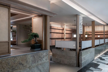 甬,浙江宁波的简称。起源于浙江宁波,甬府集团坚持传承地道宁波风味,连续多年上榜米其林星级餐厅、黑珍珠三钻餐厅。宁波凭借天然的地理优势,海产特丰,故而宁波菜以海鲜名闻内外,讲究鲜嫩软滑、原汁原味。于此基础上,餐饮装修设计公司以海洋蓝点明餐饮的主题,同时定下空间的基调。 过厅处相对狭长,设计师利用横向灯带,去拓宽空间的视觉......