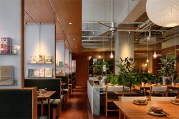 这间餐厅,宛如都市中的一片秘境,以自然、书籍与美食为媒介,构建一个让身心得以栖息的场所。在这里,工业的硬朗与自然的柔和交织,传统与现代碰撞,美食与书籍相遇,共同构筑出一个在喧嚣都市中寻得片刻宁静的理想之所。午后的光线穿过纸灯笼的褶皱,在亚克力搁板上投下朦胧的云纹,镀铬的书架边沿泛着冷冽的银光,却偏偏被藤蔓攀缠成温柔的锁......